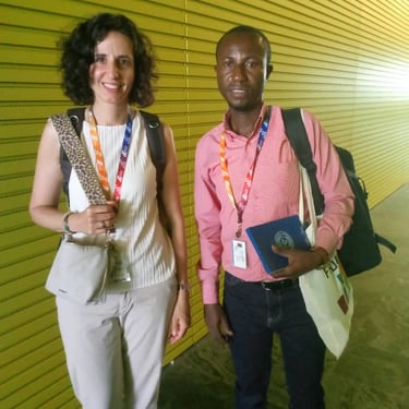 Cédric LUGEMBA de la R.D.Congo et le camarade Philip AGBEWO du Nigeria pendant l'exposition sur "Quel système éducatif pour propulser le développement des jeunes africains"